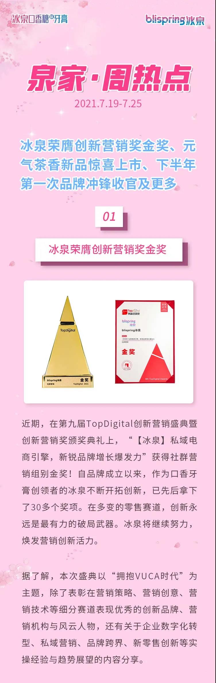 周热点| 冰泉荣膺创新营销金奖、元气茶香新品惊喜上市、下半年第一次品牌冲锋收官及更多