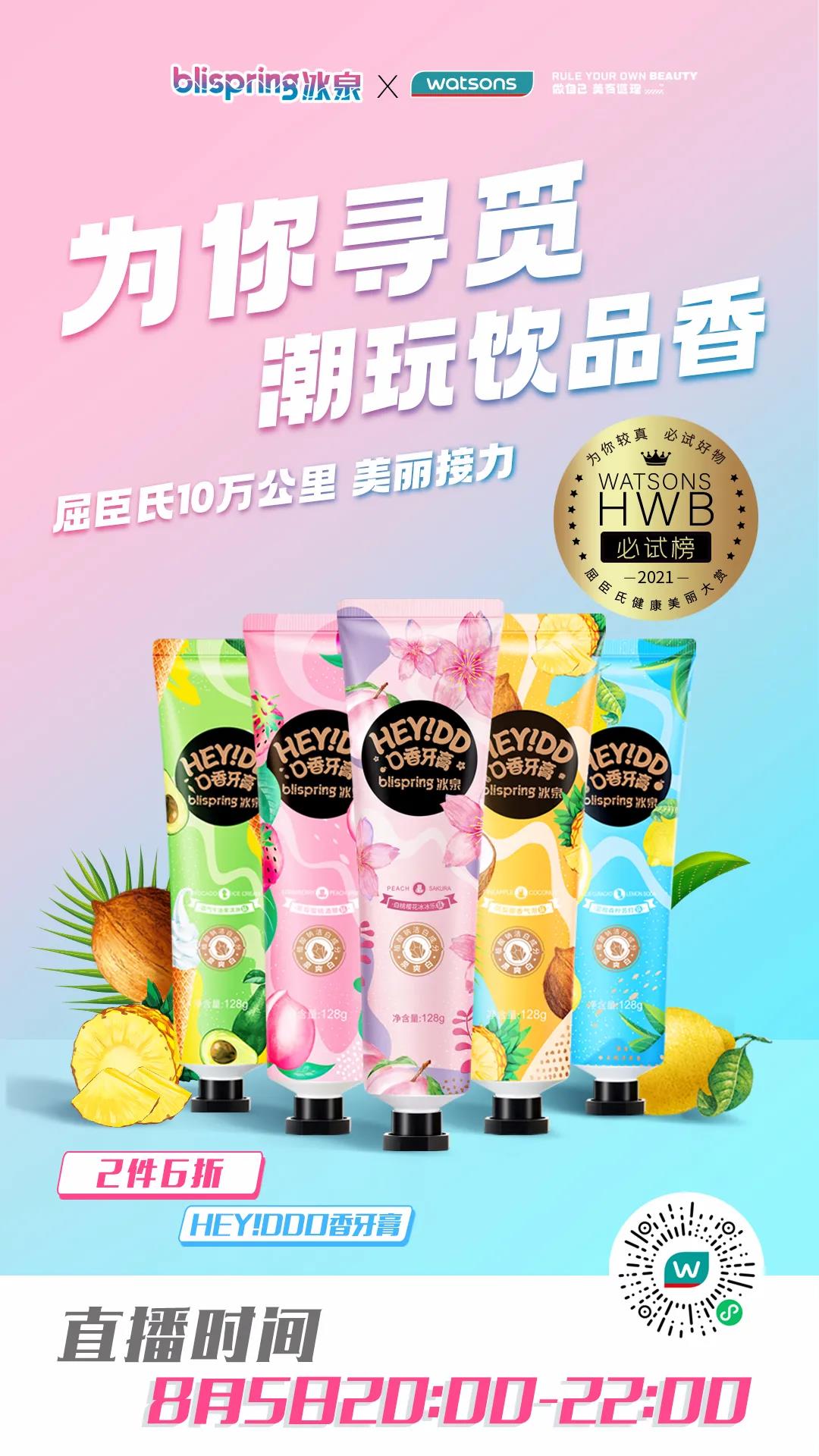 冰泉坚持度渠定做的原则,冰泉HEY!DD口香牙膏专供于屈臣氏。