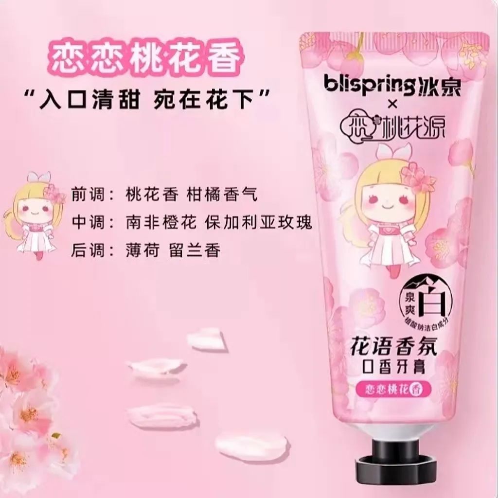 冰泉桃花源@爱瑞丝联名口香牙膏,清新淡雅,回香绵长,给你一个别样的齿间桃花源。