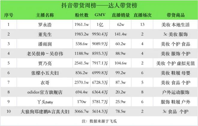 罗永浩以1亿GMV登上抖音达人带货排行榜榜首