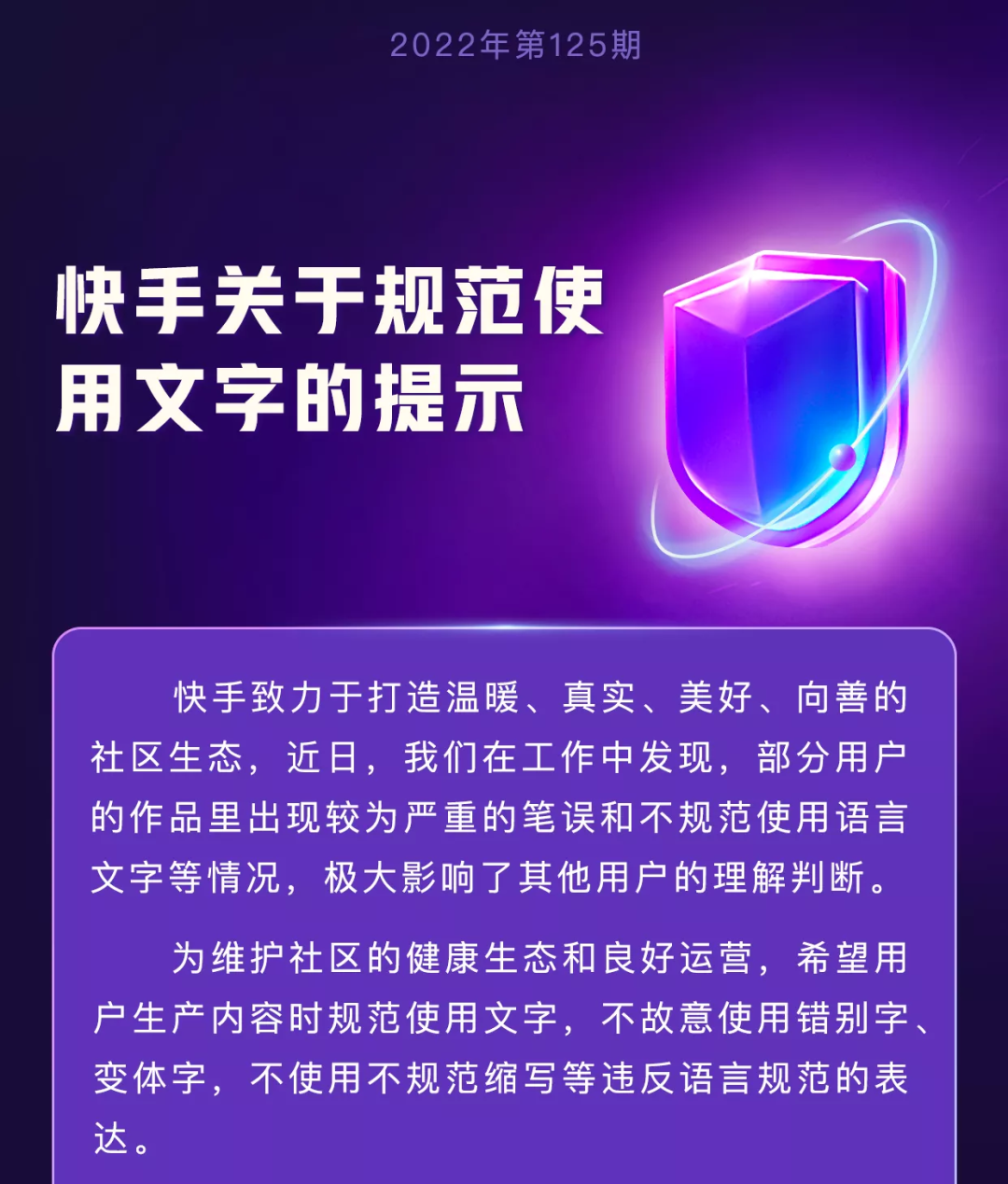 快手发布关于规范使用汉字公告