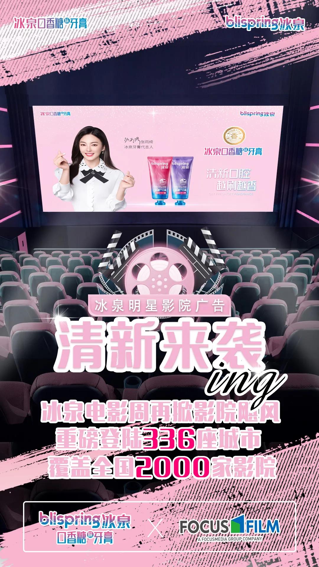 而这一轮的影院亮相,并非是冰泉第一次霸屏影院大屏。早在今年春节档期、3.8女神节档期,冰泉的影院大屏广告片就曾覆盖了全国547座城市、4730家影院,票房突破120亿,触达上亿消费者,刷新了大众对传统口腔产品的认知的同时,也点燃了口腔产品的社交属性,展现了强大的品牌力和传播力,用年轻人喜爱的时尚口腔产品,在新一代消费群体引领口香牙膏新潮流。